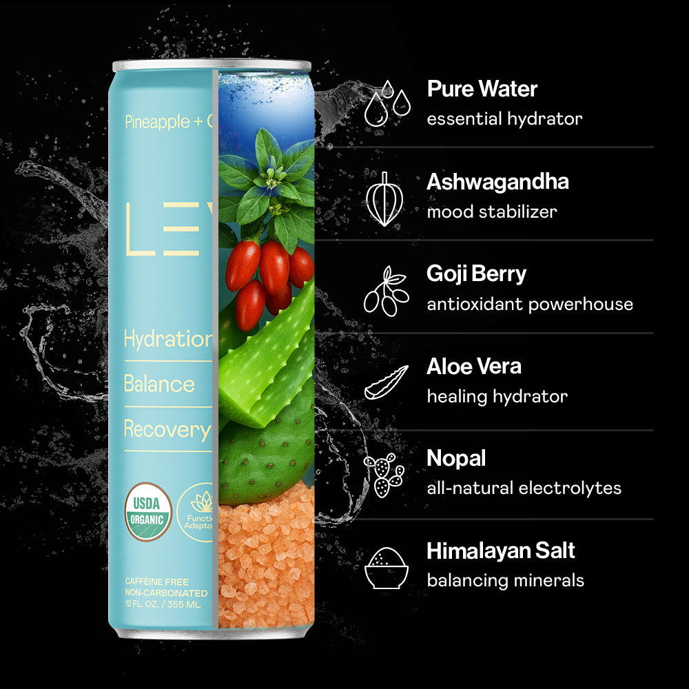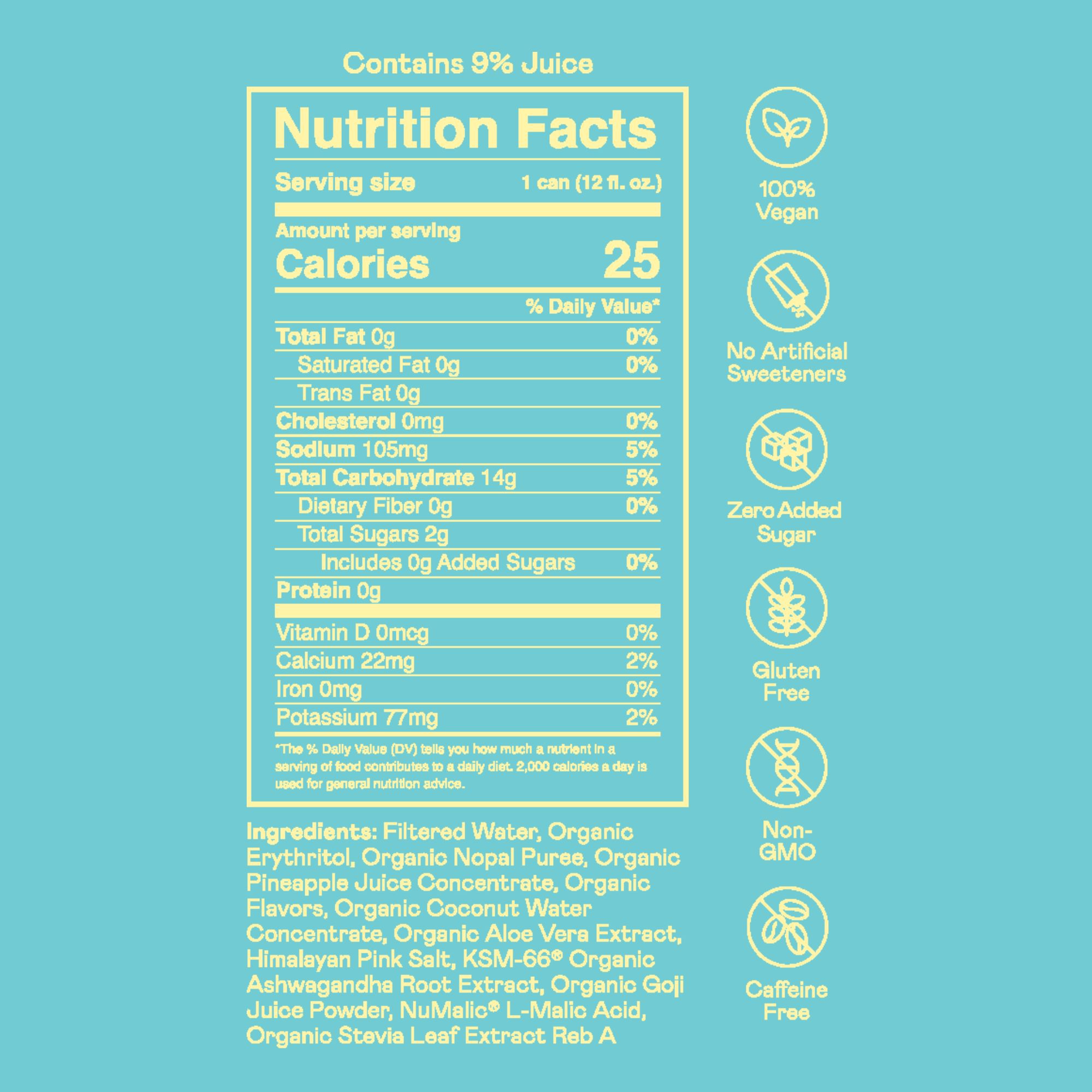 Pineapple + Coconut offers a light, refreshing tropical flavor that’s perfectly balanced for any time of day. Crafted with organic, functional ingredients, it provides a clean, elevated approach to hydration—just 25 calories with 0g added sugar.